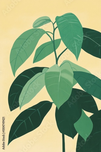 Beautiful and Vibrant Green Leaves set against a Soft Yellow Background that captivates
