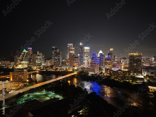 austin, skyline, night, aerial, drone, view, beautiful, stunning, illuminated, city, light, city landscape, urban, photo, texas, downtown, nocturnal, panoramic, vibrant, sparkling, majestic, impressive, elevated, unique, perspective, darkness, glow, bright, glimmering, magic, enchanting, twilight, colorado river