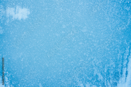 beautiful blue background of ice with cracks and bubbles