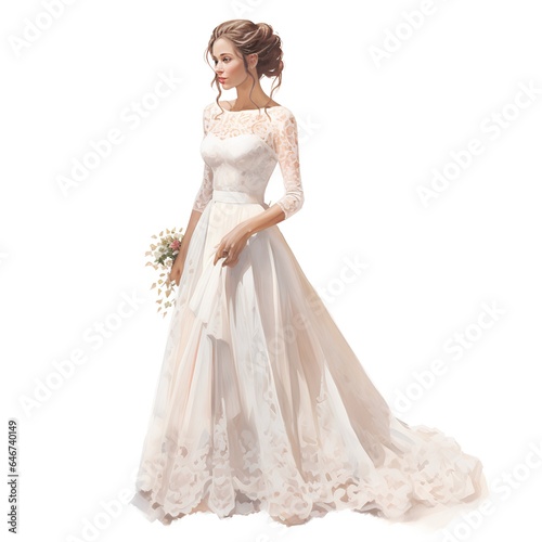 elegance, happy, model, dress, lace, painting, people, clip art, full, young, caucasian, isolated, female, bride, beautiful, bridal, body, portrait, beauty, fashion, adult, glamour, wedding, girl, person, white, pretty, gouache, woman, 1, background