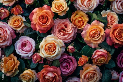 Beautiful colorful roses forming a romantic floral background