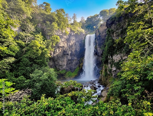 Beautiful Erskine Falls surrounded by lush foliage, canopy, outdoor adventure, peaceful
