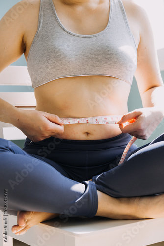 reduce, waistline, obesity, appetence, food, people, health, lifestyle, exercise, diet, body, fat, calorie, abdomen, stomach, fasting, resolution, exam, overweight, corpulent, waist, measurement, consumption, metabolism, liposuction, fast, weight, meter, pound, big, habit, bad, suffering, fighting, pouched, thick, greedy, female, catching, white background, closeup, excessive, slimming, excess, fattening, lacking