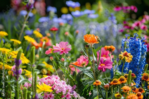 flower, garden, blooming, spring, summer, nature, colourful, blossom, plant, floral, botany, bright, colours, beauty, growth, green, natural, summer, flora, vibrant, yellow, pink, orange, blue, purple, red, white, background, gardening, outdoors, sunlight, fresh, flowerbed, flower, park, landscaping, stem, leaf, close, up, no, people, day, idylli, springtime, sunny, season, concept