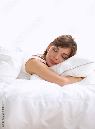 adult, alone, attractive, beautiful, beauty, bed, bedding, bedchamber, bedtime, calm, caucasian, closeup, comfortable, dream, face, female, girl, health, human, light, morning, nap, 1, only, people, person, pillow, relax, relaxation, rest, serene, sleep, sleepy, smile, sleepy, white, woman, woman, young