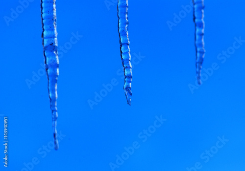 beautiful icicles shine against blue sky