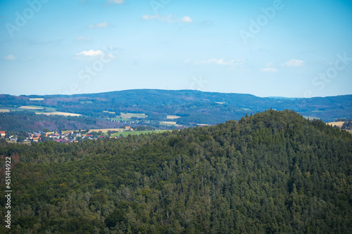 beautiful landscape of forest and valley with a settlement in eastern Germany
