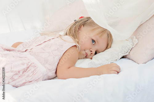 closeup, pretty, person, long, care, bedchamber, resting, attractive, concept, relax, healthy, hug, peaceful, baby, lovely, comfortable, vacation, sea, canopy, pillow, barefoot beach, dress, tender, pink, blue eye, portrait, 1, health, lifestyle, background, blond, hair, rest, happy, dream, bedtime, pillow, childhood, cute, blanket, morning, lying, sleep, little, white, girl, beautiful, young, bed