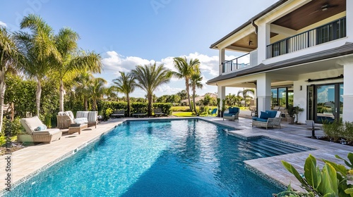 Beautiful luxury modern beach home with backyard swimming pool.