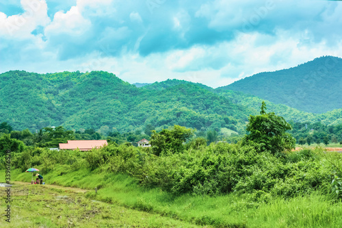 Beautiful nature landscape of northern thailand, green mountains of asia