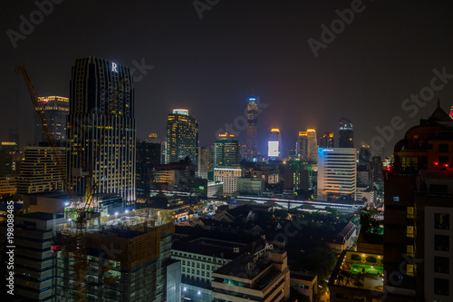 Beautiful panorama view of nightlife of Bangkok city and buildings