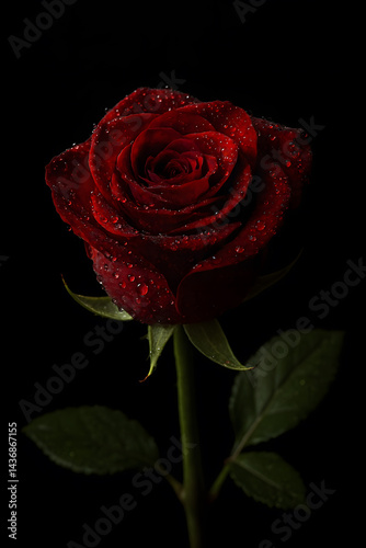 Beautiful red rose flower with water droplets on petals dark background close up macro photography