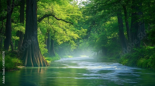 river, forest, green, tree, nature, water, landscape, scenic, flowing, lush, serene, photo, view, sunlight, foliage, tranquil, peaceful, environment, stream, bank, vegetation, idylli, wood, leaf, outdoors, fresh, calm, mist, light, branch, root, trunk, earth, beauty, tree, lake, park, sun, waterfall, summer, autumn, spring, wood, path, natural, morning, duck pond