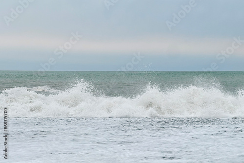 Beautiful sea wave and morning sky, natural landscape background