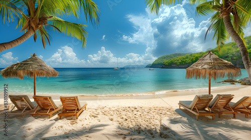 Beautiful sunny summer landscape with white sand beach