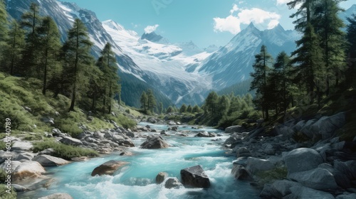 Beautiful Switzerland Blue River Stream Landscape Wallpaper Generated AI