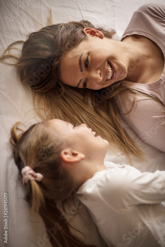adult, home, bedchamber, bonding, candid, carefree, cheerful, children, childhood, copy space, daughter, development, domestic life, family, female, fun, happy, house, indoor, avocation, lifestyle, little girl, lying down, morning, mother, eltern, people, playful, playing, relaxation, schoolgirl, smiling, talking, together, togetherness, two people, woman, young