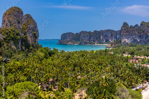 Beautiful tropical langscape from a remote viewpoint. Railay Beach, Krabi, Thailand