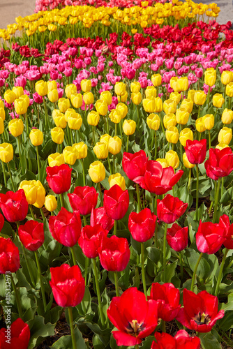 Beautiful tulip garden with flowers at full bloom as a vertical image