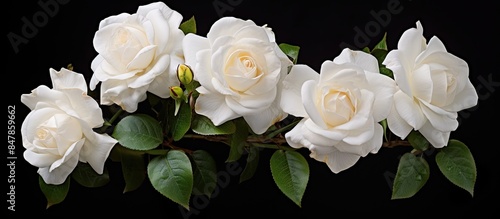 beautiful white roses are blooming. Creative banner. Copyspace image