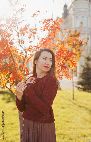 red lips, autumn, woman, beauty, park, nature, fall, fashion, forest, people, outdoors, leaf, person, smile, smiling, hair, season, tree, yellow, 1, leaf, model, face, fun, foulard, style, sweater, pullover, maroon, sunny, gorgeous, lifestyle, aesthetic, happy, freedom, weekend, romantic, brunette, city, town