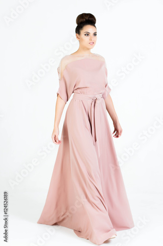 Beautiful woman in Dress. Fashion. Isolated over white.