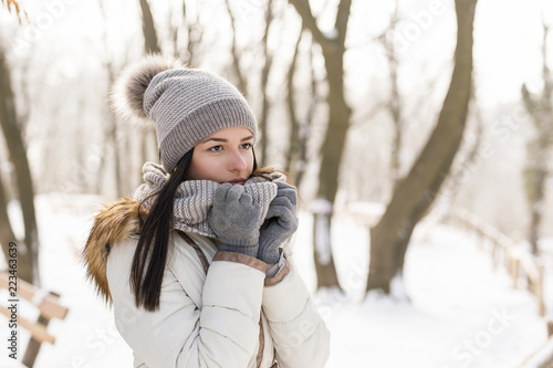 adult, attractive, beautiful, beauty, cap, caucasian, warm clothes, clothing, cold, cold weather, day, fashion, fashionable, female, forest, frost, glacé, fun, girl, glove, happy, hat, holding, holiday, jacket, joy, mountain, nature, 1, park, person, foulard, serious, snow, snowfall, snowy, standing, sunny, tree, vacation, white, winter, woman, young, happiness, natural, pensive