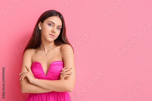 accessory, adult, background, beautiful, beauty, caucasian, clothes, colours, copy, creative, crossed, decorative, dress, earring, elegant, face, fantasy, fashion, female, girl, glamour, glistering, glowing, hand, idea, jewellery, lady, lifestyle, look, make-up, modern, necklace, people, person, pink, portrait, pretty, shine, skin, space, style, stylish, teenage, teenage, text, trend, trendy, vogue, woman