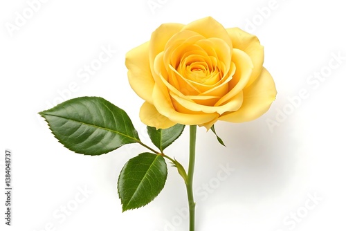 rose, yellow, flower, isolated, white, background, floral, bloom, blossom, plant, nature, stem, leaf, botany, single, cut-out, with, green, leaf, clean, beautiful, art, design, digital, modern, creative, conceptual, professional, detailed