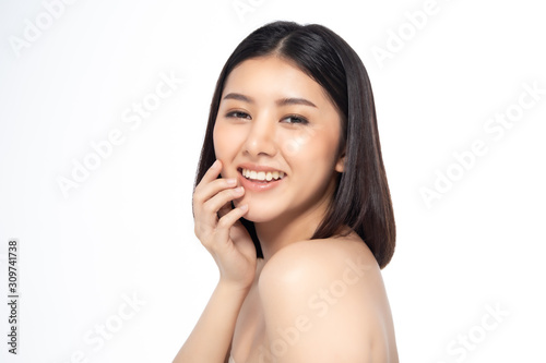 Beautiful Young Asian Woman short hair with Clean Fresh Skin. Face care, Facial treatment, Cosmetology, beauty and healthy skin and cosmetic ideas concept.