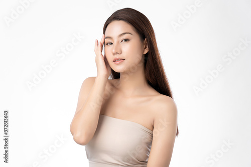 Beautiful Young asian Woman with Clean Fresh Skin, on white background, Face care, Facial treatment, Cosmetology, beauty and spa, Asian women portrait