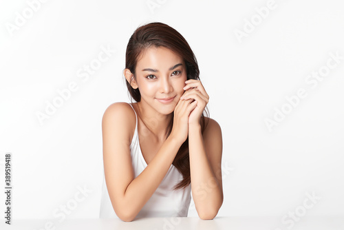 Beautiful young asian woman with clean fresh skin on white background, Face care, Facial treatment, Cosmetology, beauty and spa, Asian women portrait