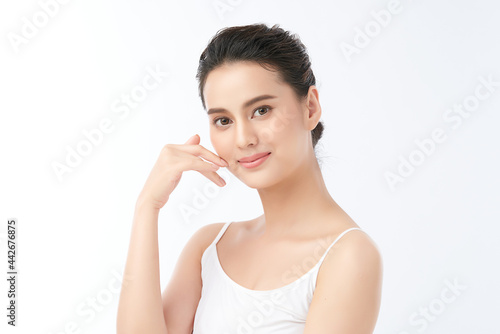 Beautiful young asian woman with clean fresh skin on white background, Face care, Facial treatment, Cosmetology, beauty and spa, Asian women portrait.