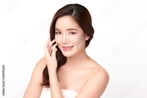 Beautiful young asian woman with clean fresh skin on white background, Face care, Facial treatment, Cosmetology, beauty and spa, Asian women portrait.
