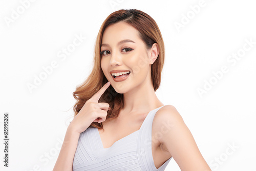 Beautiful young asian woman with clean fresh skin on white background, Face care, Facial treatment, Cosmetology, beauty and spa, Asian women portrait.