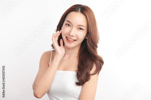 Beautiful young asian woman with clean fresh skin on white background, Face care, Facial treatment, Cosmetology, beauty and spa, Asian women portrait.
