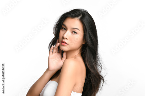 Beautiful young asian woman with clean fresh skin on white background, Face care, Facial treatment, Cosmetology, beauty and spa, Asian women portrait.