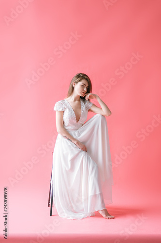 hair, bride, dress, back, accessory, lace, isolated, wedding, silk, gentle, beautiful, black, young, brunette, white, style, beauty, hand-made, female, caucasian, cute, natural, pretty, boudoir, bedchamber, luxury, bouquet, interior, room, pink, woman, girl, background, rose, coiffure, model, morning, bed, fashion, flower, tender, lingerie, sexy, portrait, bridal, underclothing, lady, glamour, sensual