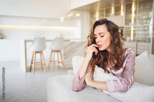 woman, sofa, couch, home, lifestyle, living room, interior, kitchen, young, morning, portrait, beautiful, dreaming, beauty, lingerie, awake, arousing, early, resting, enjoying, wellness, leisure, soft, pleasure, comfort, calm, comfortable, healthy, peace, lady, style, bedtime, apartment, relaxation, pajama, waking, caucasian, lazy, happy, white, female, laziness, rest, pretty, attractive, relax, girl, room