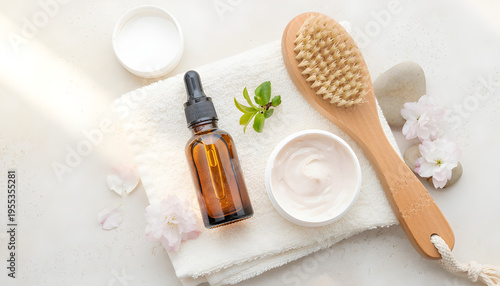 Beauty Products Flat Lay Towel Flowers Spa Skincare Aesthetic Scene