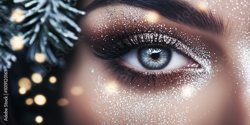christmas, banner, make-up, lip, glamour, make-up, skin, eye, coiffure, red, studio, care, 1, person, elegance, lady, head, closeup, sensuality, style, face, model, woman, beauty, fashion, hair, brunette, closeup, christmas tree, year, holiday, christmas, decoration, celebration, winter, present, bow, smile, december, eye, eyebrow, macro, eyelash, look, eyelash, mascara, human, blue