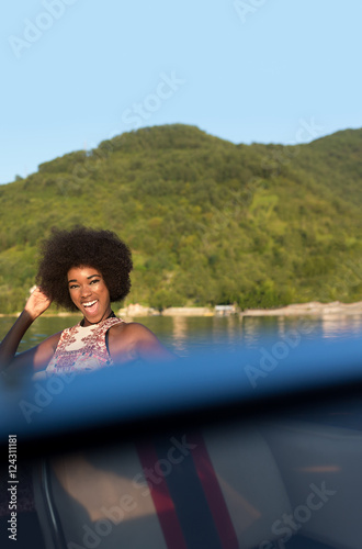 Beauty sexy afro american girl with perfect thin figure enjoying