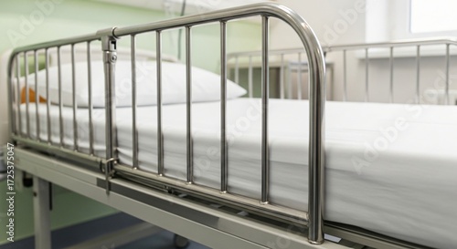 bed, cradle, close, sturdy, medicals, metal, frame, patient, mattress, end, support, hospital, device, care, health care, hard-wearing, ward, equipment, therapy, clinical, safety, comfort, utility, treatment, structure, protective, gear, rehabilitation, health, aid, strong, construction, assist