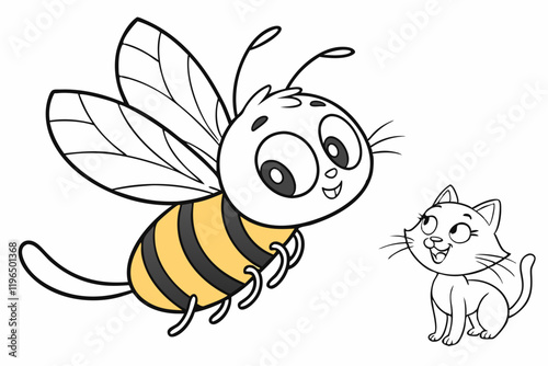 Bee cartoon Coloring page. Coloring book for kids isolated on a white background. Vector outline