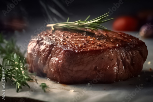 Beef steak. Juicy medium Rib Eye steak. Grilled gourmet perfect Steak. generative ai