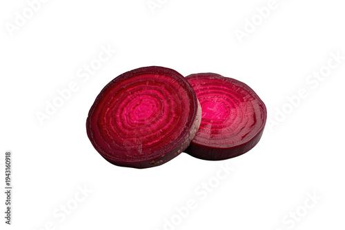 Beetroot slices showing raw fresh root vegetable cross-section with vibrant red purple color and transparent background