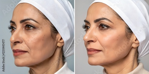 Before and after of an Arab woman picture of a French lifting – thread lifting for face tightening and skin rejuvenation