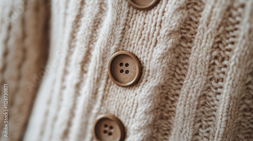 Beige knit wool sweater with button detail, representing cozy fashion.
