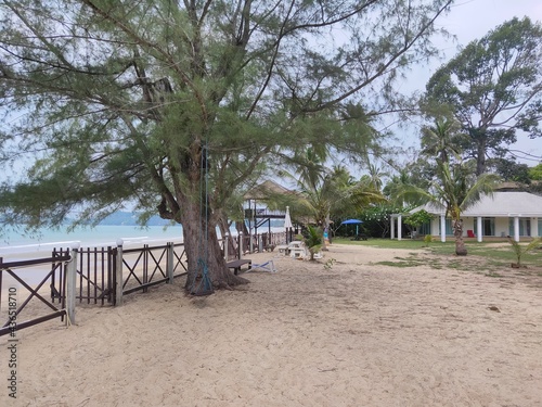beach, tree, park, nature, sea, chair, landscape, sky, summer, sand, green, garden, bench, tree, wood, water, travel, forest, table, blue, island, picnic, view, vacation