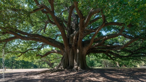 Beneath a large tree's canopy, showcasing isolation in nature, preservation